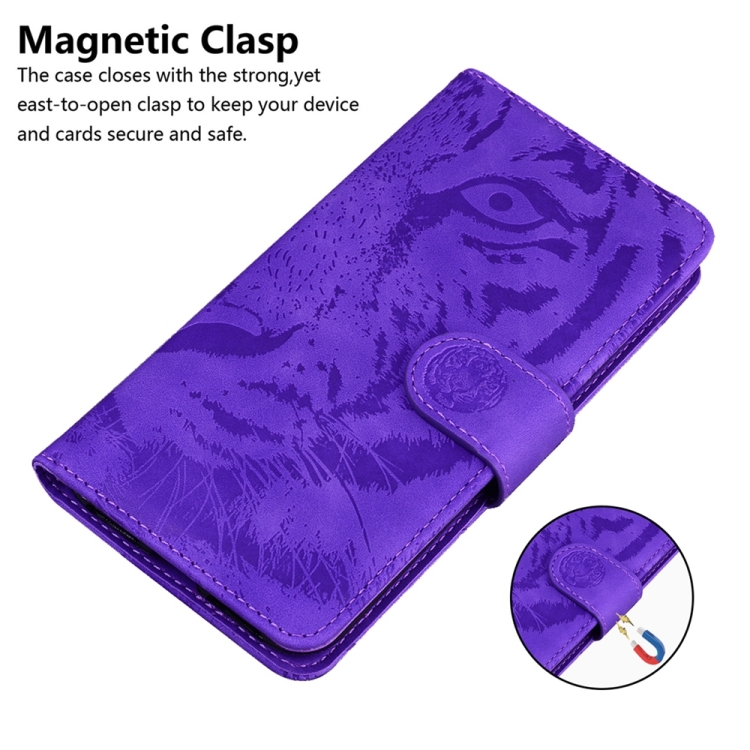 Funda de Cuero para Honor X6A con Tapa Tiger Embossed Pattern (Púrpura)