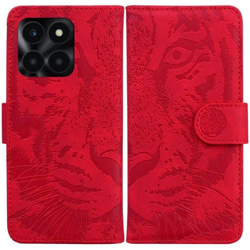 Funda de Cuero para Honor X6A con Tapa y Patrón Tiger Embossed (Rojo)