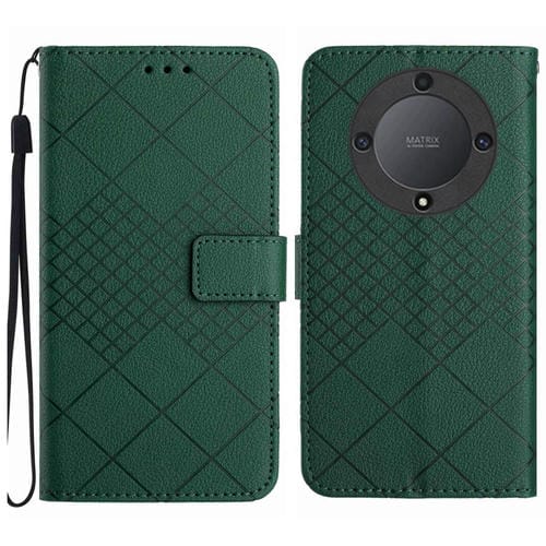 Funda de Cuero para Honor X9B con Textura de Rejilla Rómbica (Verde)