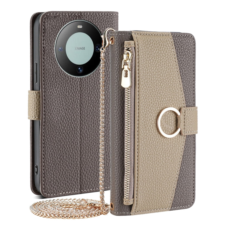 Funda para Teléfono Huawei Mate 60 de Cuero con Textura Litchi Cruzada (Gris)
