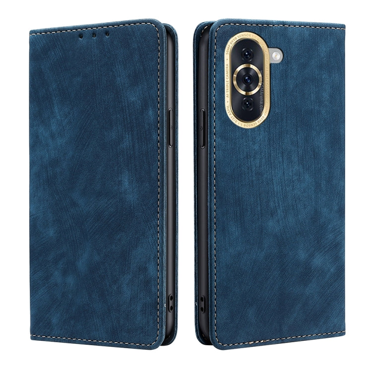 Funda de Cuero Magnética para Huawei Nova 10 con Rfid y Cepillo Antirrobo (Azul)
