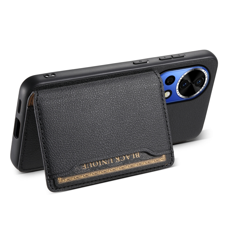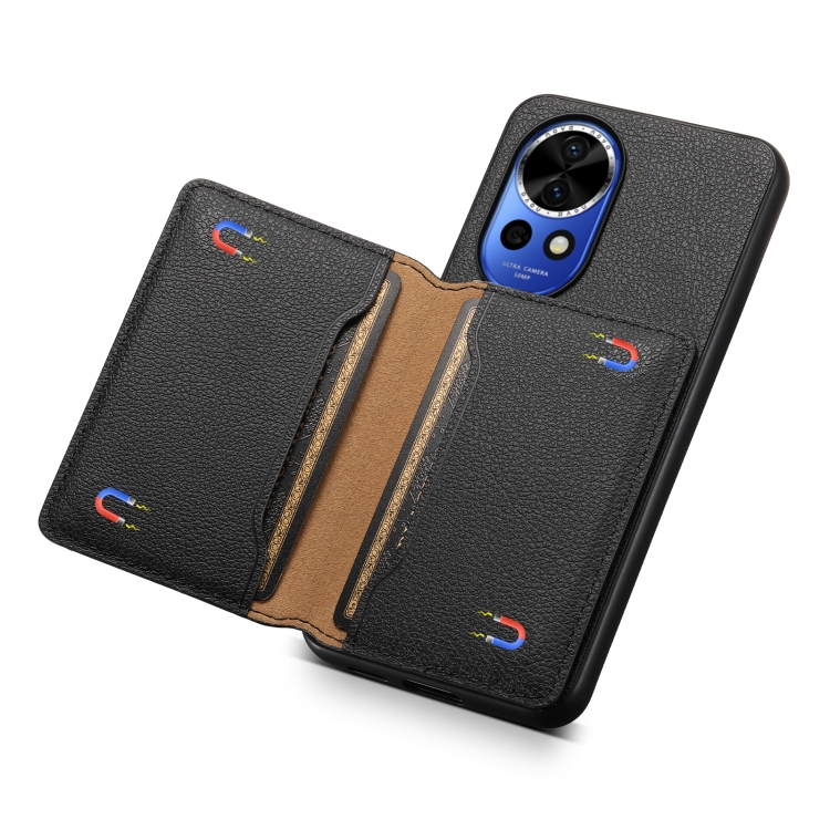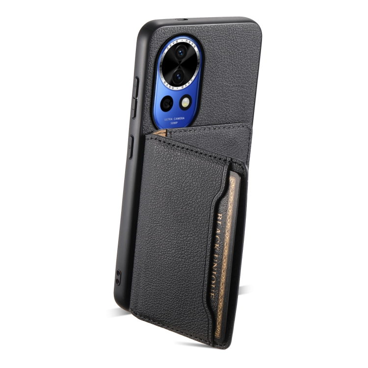 Funda para Huawei Nova 12 con Diseño de Bolsa para Tarjetas y Textura de Pantorrilla (Negro)