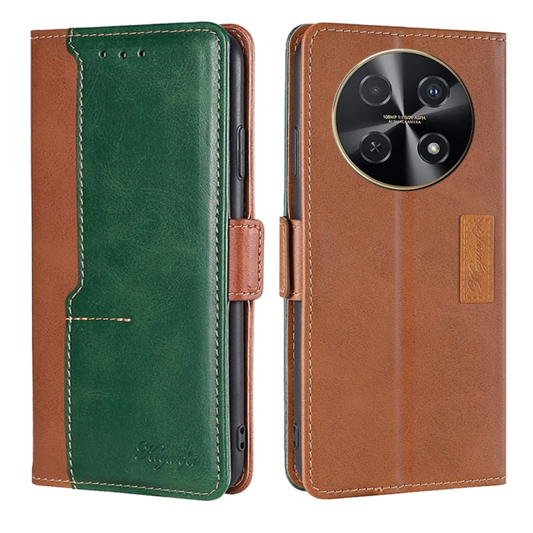 Funda de Cuero para Huawei Nova 12I 4G con Hebilla Lateral en Contraste (Marrón Claro + Verde)