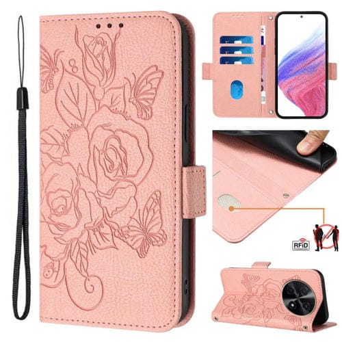 Funda de Cuero Antirrobo RFID para Huawei Nova 12I 4G con Relieve (Rosa)