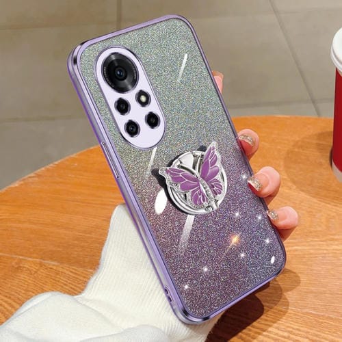 - 1x Funda TPU para Huawei Nova 8 Pro con Soporte de mariposa y brillo degradado (Púrpura)