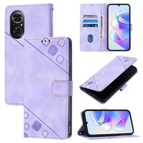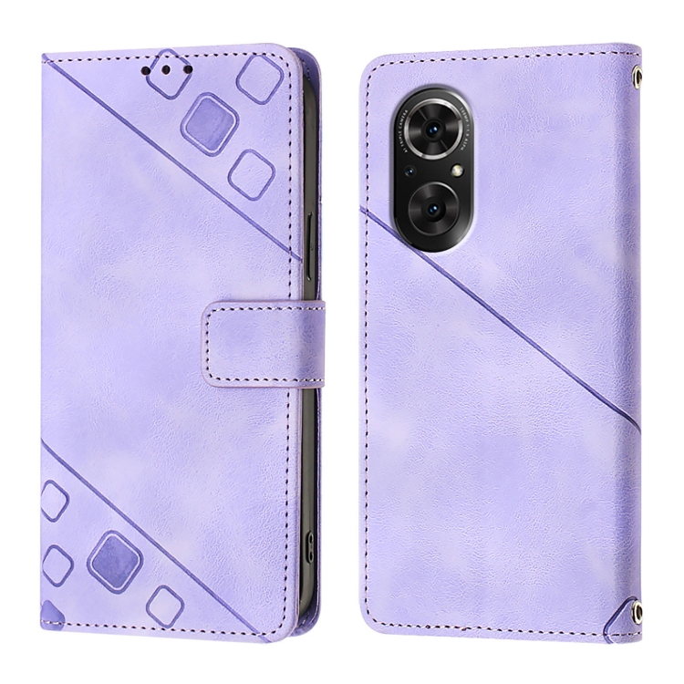 - 1x Funda de Cuero Skin Feel para Huawei Nova 9 Se en Relieve (Púrpura Claro)