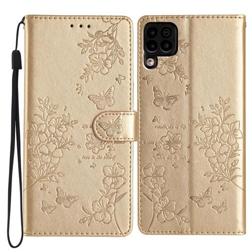 • 1x Funda para Huawei P40 Lite de Cuero con relieve de flor y mariposa (Dorado)
