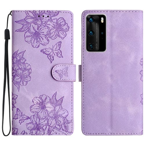 Funda para Huawei P40 Pro Cherry Blossom Butterfly Skin Feel de PU en Relieve (Púrpura)