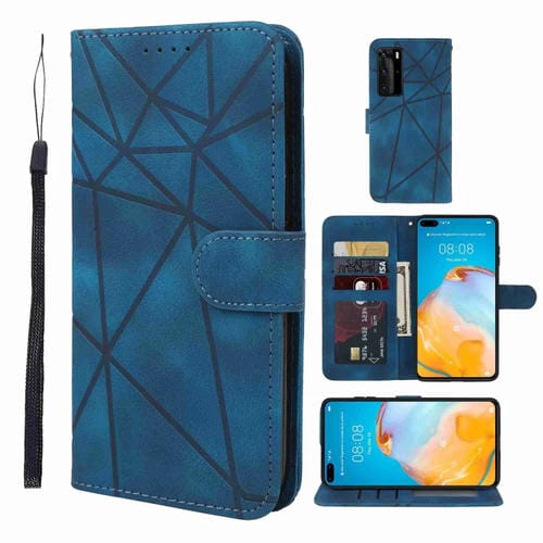 Funda de Cuero para Huawei P40 Skin Feel con Líneas Geométricas (Azul)
