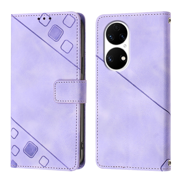 - 1x Funda de Cuero Huawei P50 Skin Feel para Teléfono en Relieve (Púrpura Claro)