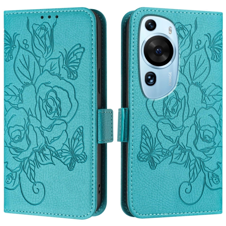 Funda de Cuero Huawei P60 Art Embossed Rose Antirrobo con RFID (Azul Claro)
