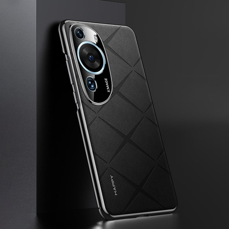 Funda de Cuero Liso para Huawei P60 Art para PC (Negro)