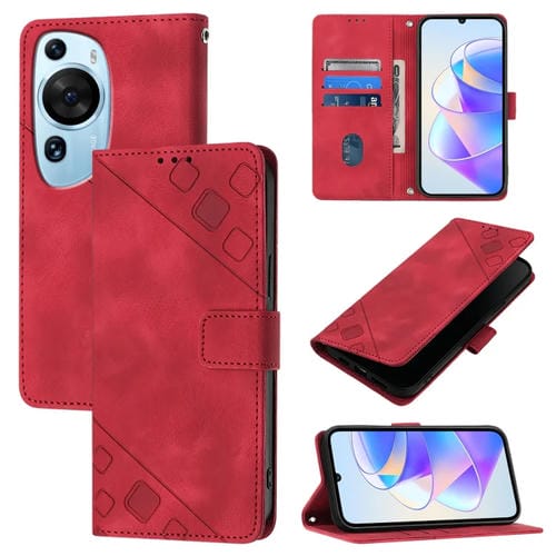 Funda de Cuero para Huawei P60 Art Skin Feel en Relieve (Rojo)