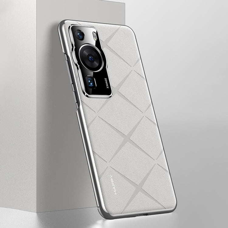 Funda de Cuero Liso para Huawei P60 y P60 Pro Teléfono PC (Blanco)