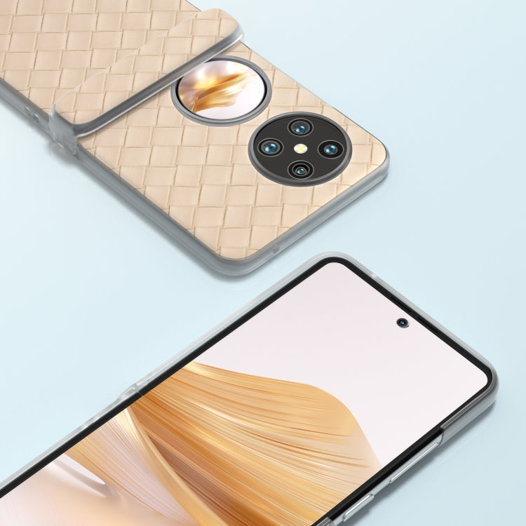 Funda 3 en 1 para Huawei Pocket 2 de PU con Marco Translúcido Esmerilado y Textura Tejida (Beige)