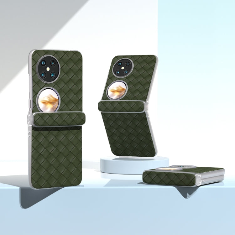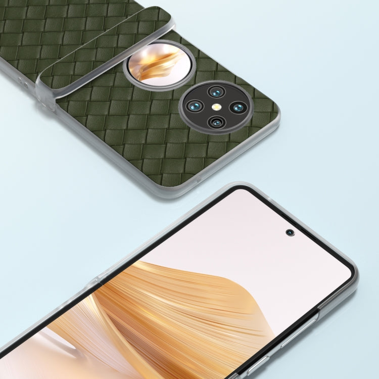 Funda 3 en 1 para Huawei Pocket 2 PU con Marco Translúcido Esmerilado y Textura Tejida (Verde)