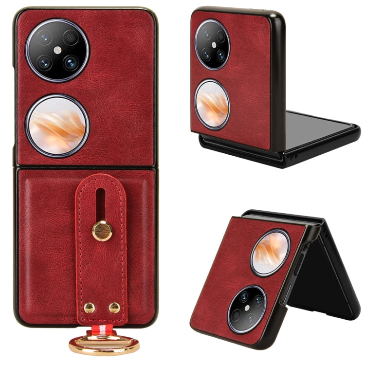 Funda Trasera de Cuero para Huawei Pocket 2 con Pulsera (Rojo)