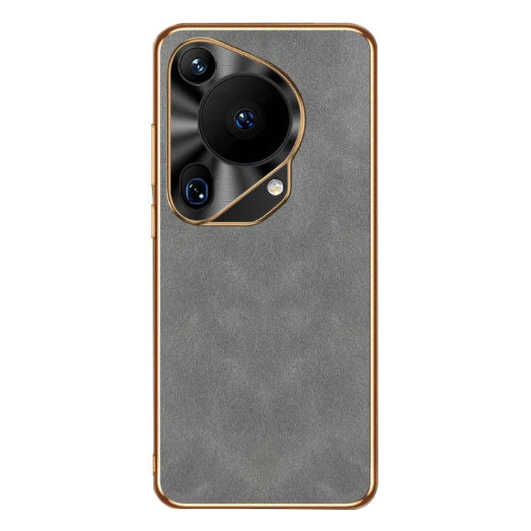 Funda de Cuero Piel de Cordero para Huawei Pura 70 con Galvanoplastia Ultra (Gris)