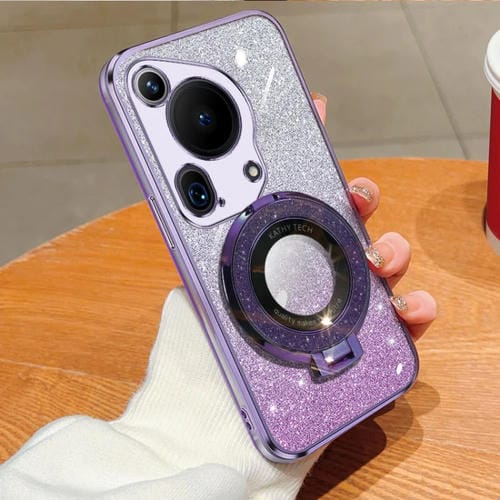 - 1x Funda TPU para Huawei Pura 70 con Soporte redondo y brillo degradado Ultra Plateado (Púrpura)