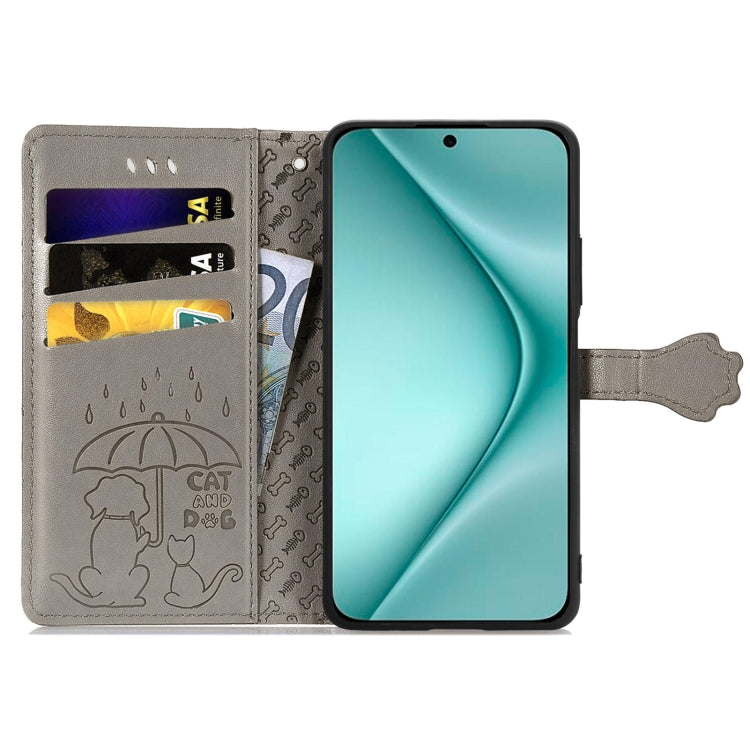 Funda para Huawei Pura 70 Pro+ de Cuero con Relieve de Perro y Gato (Gris)