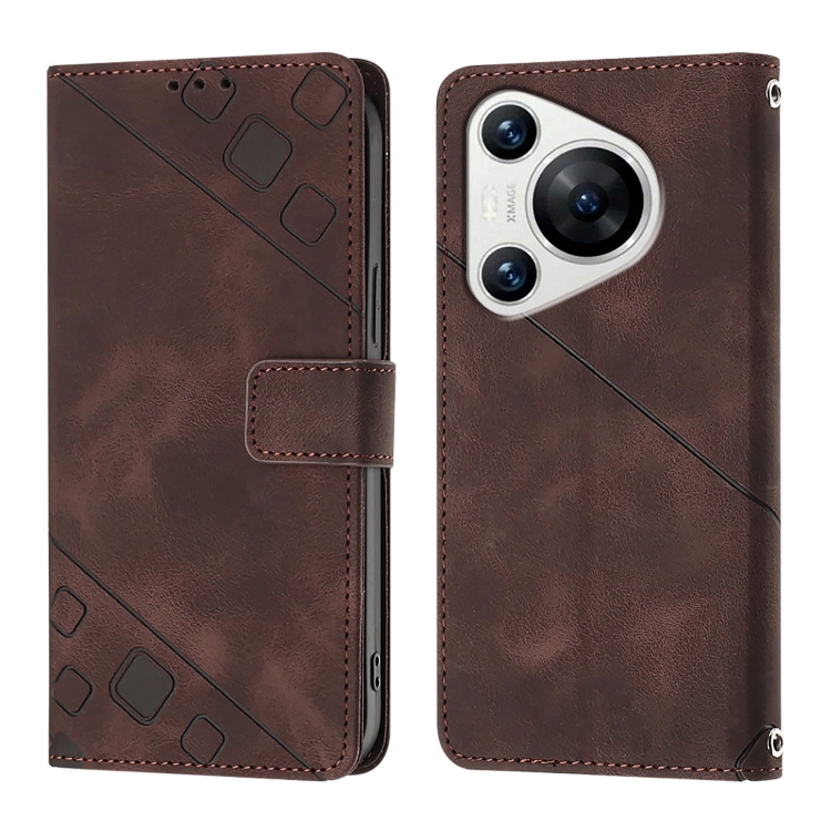 Funda de Cuero para Huawei Pura 70 Skin Feel en Relieve (Marrón)