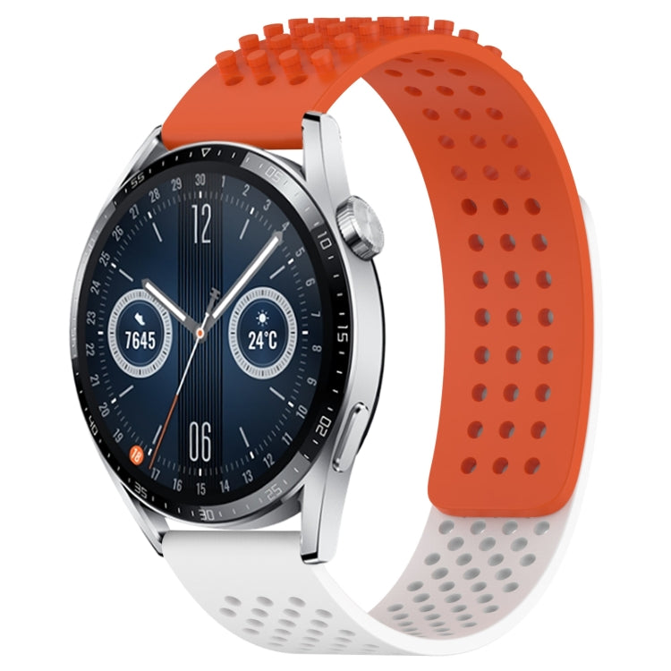 Correa de silicona para Huawei Watch GT3 46mm 22mm con agujeros y puntos 3D transpirables (Naranja + Blanco)