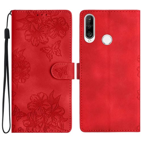 - 1x Funda para Huawei Y6P Cherry Blossom Butterfly Skin Feel en PU en relieve (Rojo)