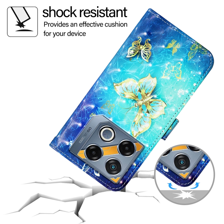 Funda de Cuero para Infinix GT 20 Pro con Tapa Horizontal y Pintura 3D (Mariposa Dorada)
