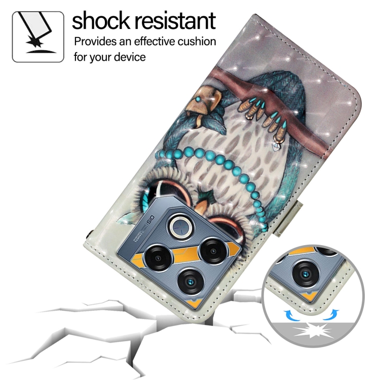 Funda para Teléfono Infinix GT 20 Pro Cuero con Tapa Horizontal y Pintura 3D (Búho Gris)