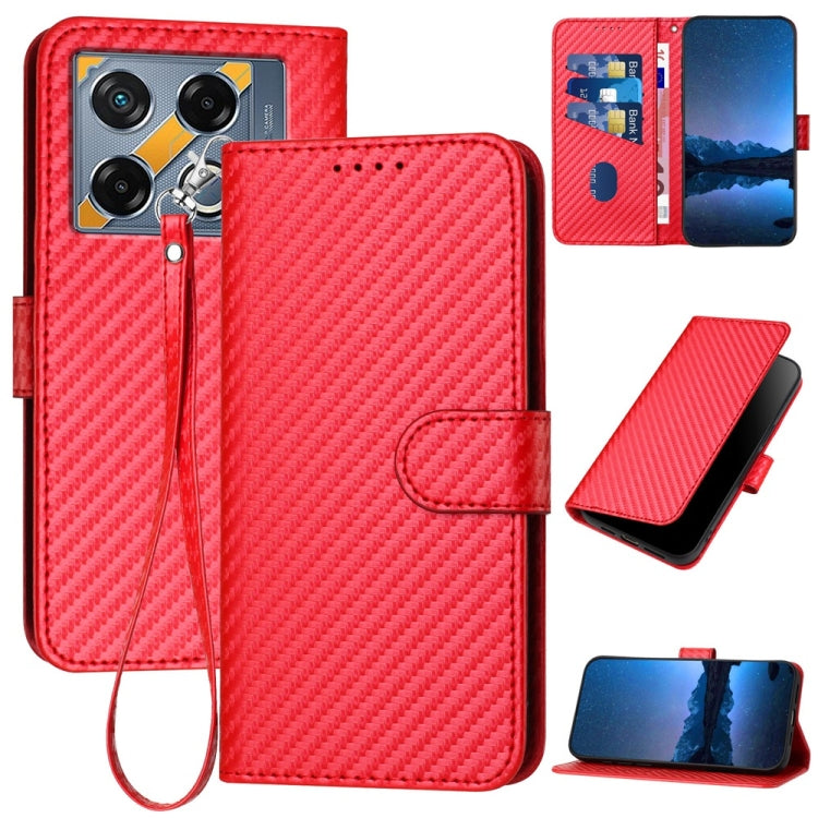 Funda de Cuero para Infinix Gt 20 Pro Yx0070 con Hebilla de Fibra de Carbono y Cordón (Rojo)