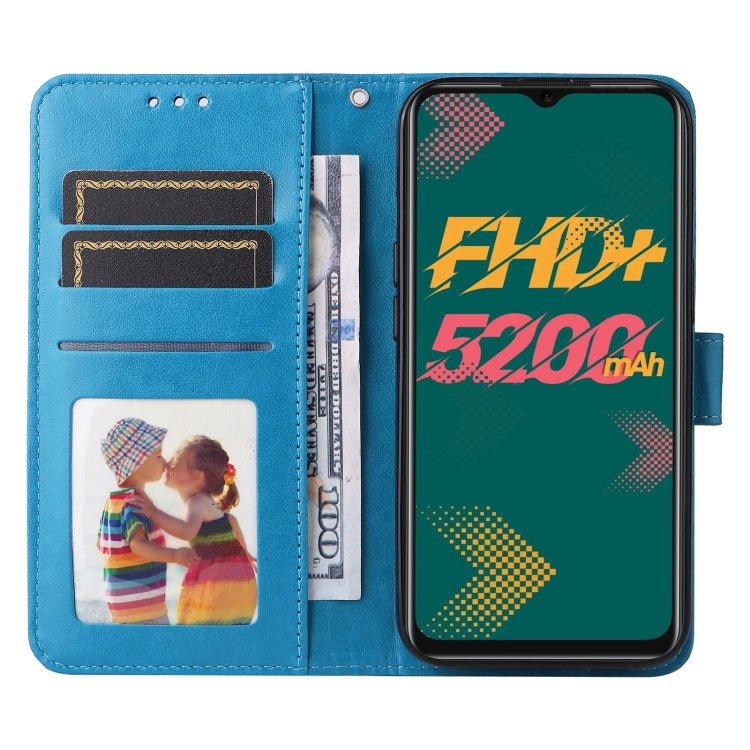 Estuche para Teléfono Infinix Hot 11 Cuero con Estampado de Girasol en Relieve (Azul)