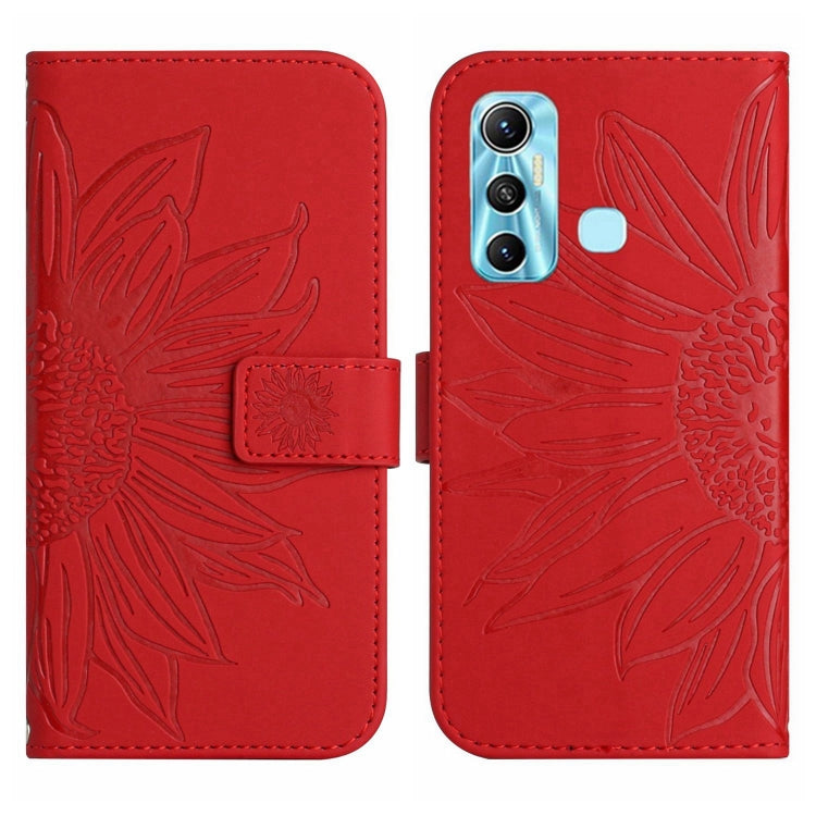 Funda Flip de Cuero para Infinix Hot 11 con Cordón y Diseño Sun Flower (Rojo)