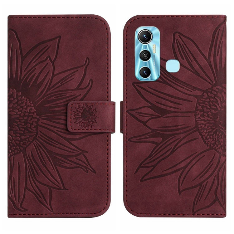 Funda de Cuero Flip para Infinix Hot 11 Skin Feel con Cordón y Patrón Sun Flower (Rojo Vino)