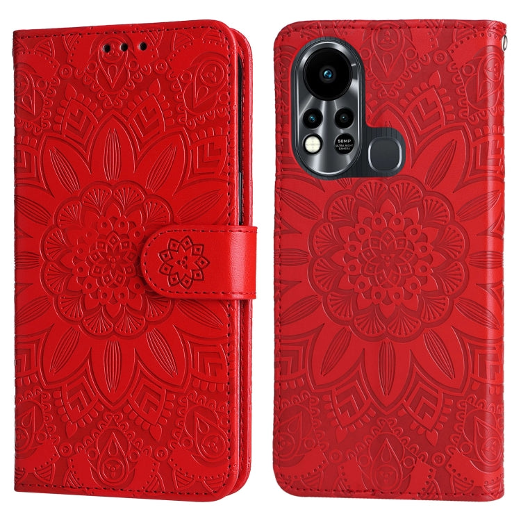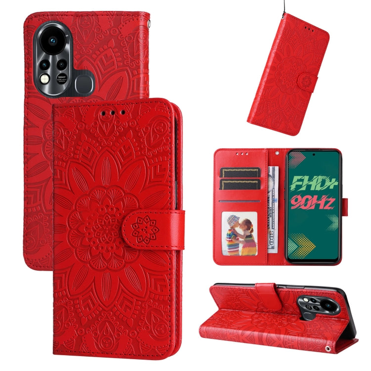Estuche para Teléfono Infinix Hot 11S Cuero con Estampado de Girasol en Relieve (Rojo)