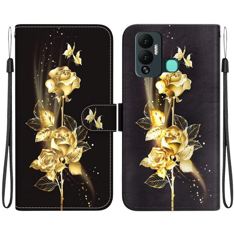 Estuche de Cuero para Infinix Hot 12 Play con Dibujo Coloreado y Textura de Cristal (Mariposa Dorada Rosa)