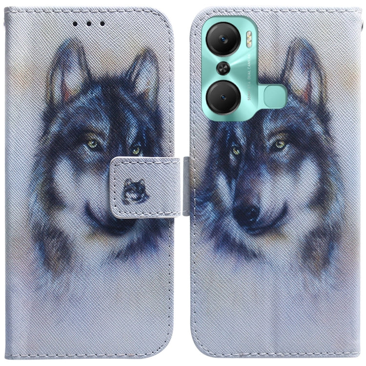 Estuche para teléfono Infinix Hot 12 Pro de cuero con tapa horizontal y dibujo lobo blanco