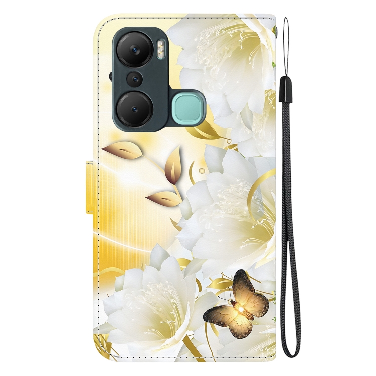 Funda de Cuero para Infinix Hot 12 Pro con Dibujo Coloreado y Textura de Cristal (Epiphyllum Mariposa Dorada)