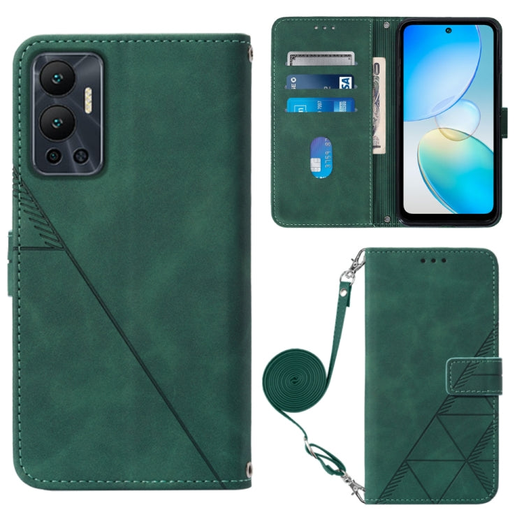 Funda de Cuero Crossbody 3D En Relieve para Infinix Hot 12 X6817 Flip (Verde Oscuro)