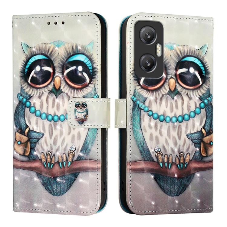 Funda de Cuero para Infinix Hot 20 5G con Tapa Horizontal y Pintura 3D (Búho Gris)