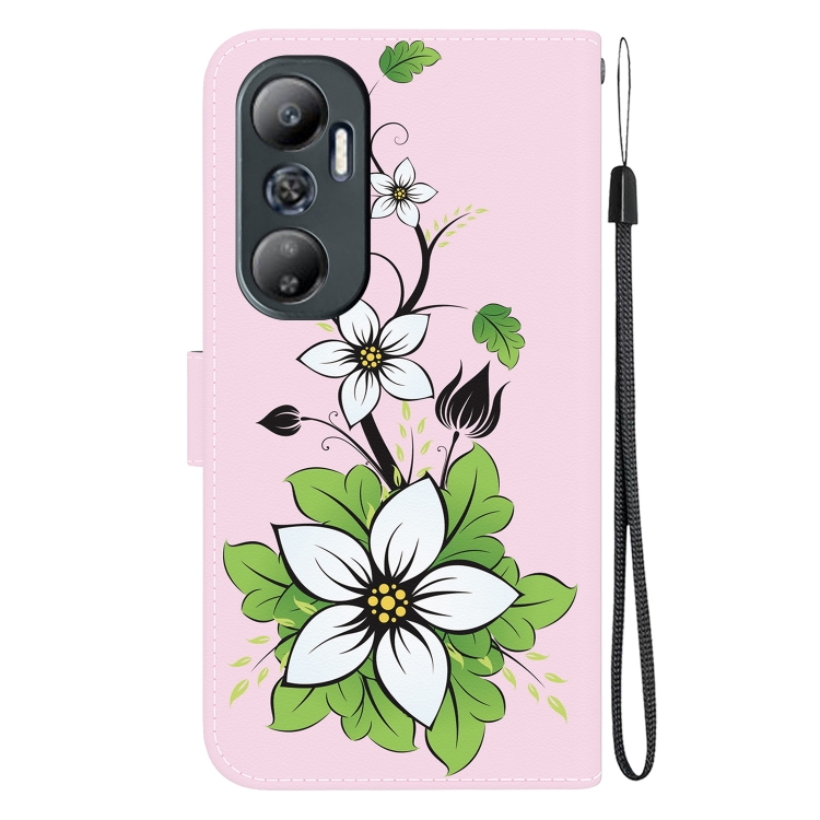 Funda de Cuero para Infinix Hot 20 con Dibujo Coloreado y Textura de Cristal (Lirio)
