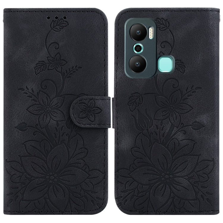 Estuche de Cuero En Relieve para Infinix Hot 20 Play Lily (Negro)