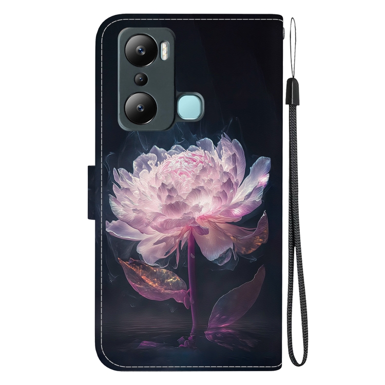 Funda de Cuero para Infinix Hot 20I con Dibujo Coloreado y Textura de Cristal (Peonía Púrpura)