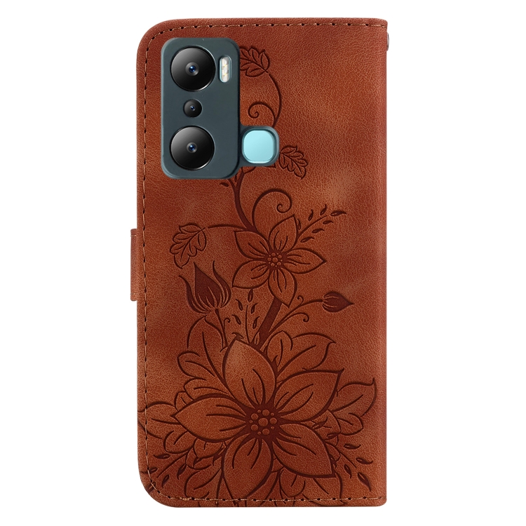 Funda de Cuero En Relieve para Infinix Hot 20I Lily para Teléfono (Marrón)