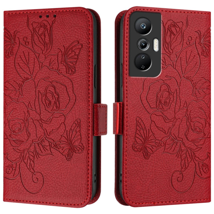 Estuche de Cuero Antirrobo para Infinix Hot 20S/20 Pro con RFID y Rose en Relieve (Rojo)