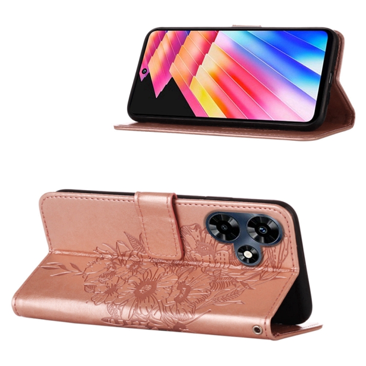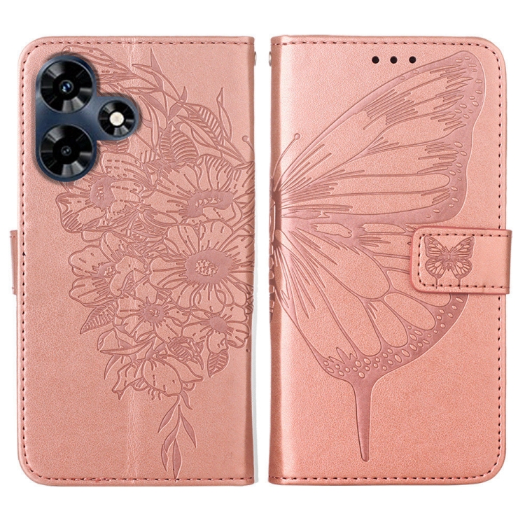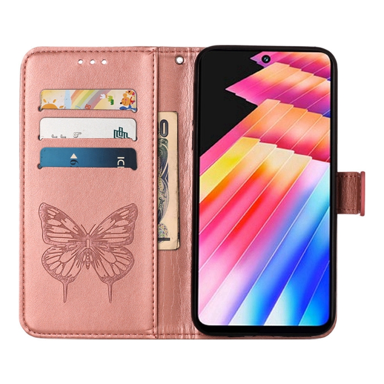 Estuche para Teléfono Infinix Hot 30 4G X6831 de Cuero con Mariposa en Relieve (Oro Rosa)