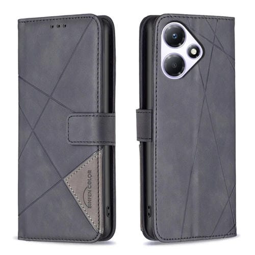 Funda de Cuero para Infinix Hot 30 Play NFC con Hebilla Magnética y Textura de Rombo (Negro)