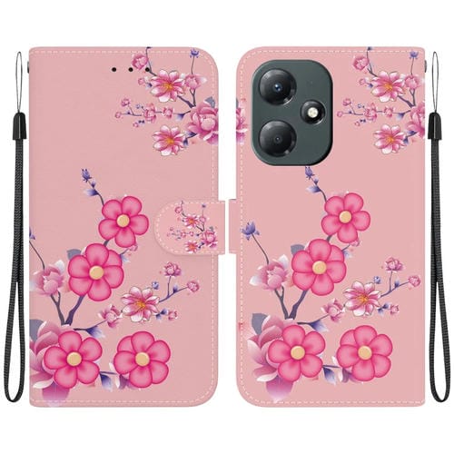 Funda para Infinix Hot 30 Play X6835 de Cuero con Dibujo Coloreado y Textura de Cristal (Flores de Cerezo)