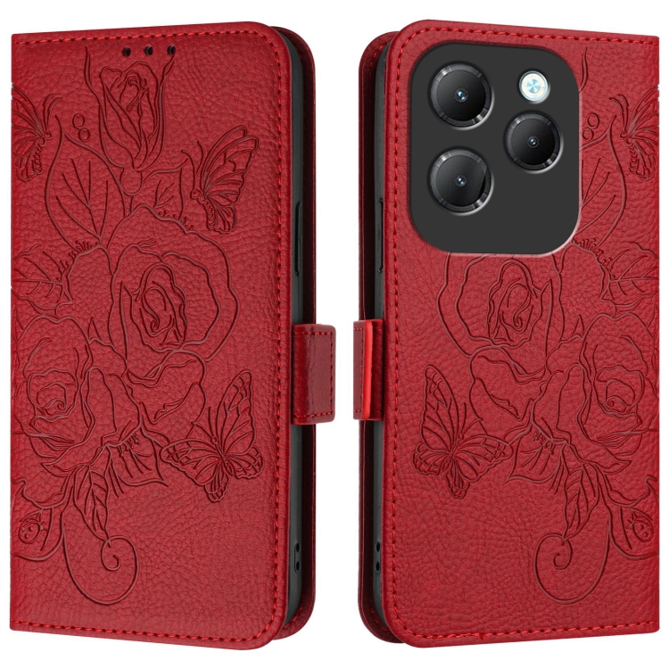 Funda de Cuero Antirrobo para Infinix Hot 40/40 Pro con RFID Rose en Relieve (Rojo)