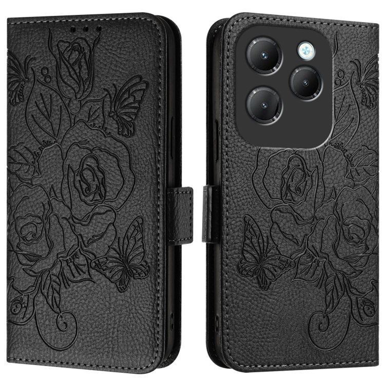 Funda de Cuero Antirrobo RFID para Infinix Hot 40/40 Pro con Relieve Rosa (Negro)