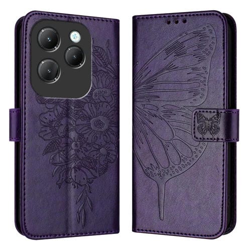 Funda de Cuero para Infinix Hot 40 y Hot 40 Pro con Mariposa en Relieve (Púrpura Oscuro)